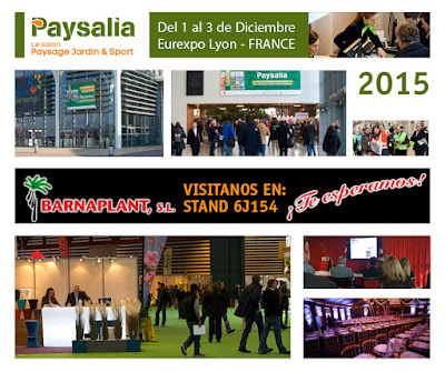 Barnaplant participará, del 1 al 3 de diciembre como empresa expositora, en el salón Paysalia 2015 en Eurexpo Lyon, Francia. Este certamen profesional, el único de estas características que se celebra en Francia, reune a las principales empresas del sector del paisajismo y la jardinería. En esta edición Paysalia acojerá más de 400 expositores de más de 30 países y según sus estimaciones espera recibir más de 14.000 visistantes.